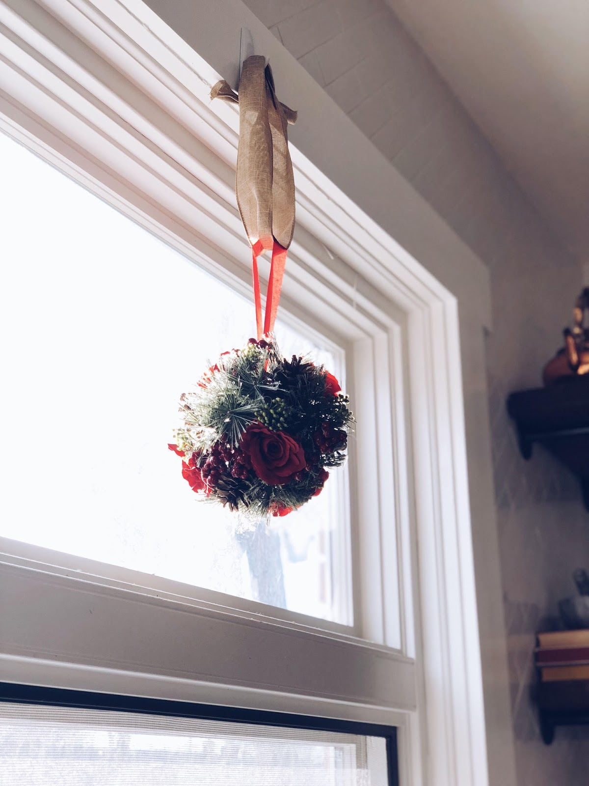 I had seen a couple of Pinterest images of wreaths above the kitchen sink and I loved it!!