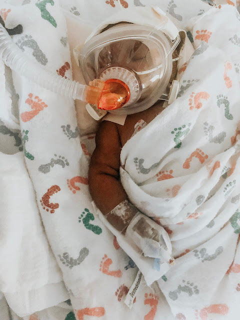 Days before she turned 2 months she landed in the ICU with RSV. We were admitted for 6 days. It was definitely one of the scariest things we've experienced as a family. Seeing her so helpless and sick was so awful. She also gave me her first big purposeful smile in the hospital. I was so happy to see it!!! Being a nurse and understanding everything that was happening was a blessing and a curse. When we arrived to the ED her temperature was lower than normal which prompted a "sepsis yellow", which started an entire series of events including the need for a lumbar puncture. Her respiratory rate was consistently in the 80's and 90's. She was getting worse before she got better. Unable to eat by mouth due to her respiratory status they had to place a feeding tube to give her my breastmilk.